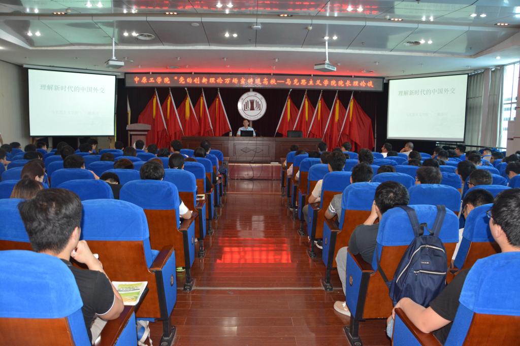 6月21日上午,我校在报告厅举行“党的创新理论万场宣讲进高校”系列活动之“马克思主义学院院长理论谈”。马克思主义学院院长随新民教授结合党的十九大精神和创新理论,着重对新时代中国外交的新思想、新发展进行了宣讲,2015级学生及部分老师现场聆听了报告。