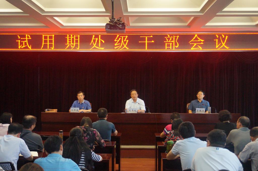 6月21日下午,我校在龙湖校区行政楼501会议室召开试用期处级干部会议。校党委副书记刘志刚、校纪委书记李俊杰、党委组织部部长刘学健及全体试用期干部参加会议。会议由刘学健部长主持。